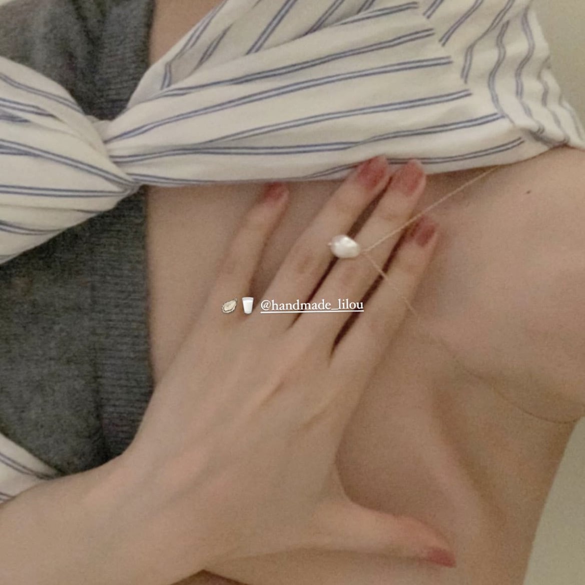 華奢なチェーンとパールのネックレス。